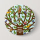 Fun easy-to-personalize family reunion collectible pin, featuring tree filled with cartoon birds. Edit text to add your family name and year.