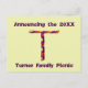 Create excitement for your next family reunion with this colourful announcement. The bright letter T is centred on the front and personalises this invitation with the initial of your family's last name. Easily personalise the text with the details of your family gathering. The solid colour of the front and font colour with the exception of the large monogram T may be customised. My family reunion collection is constantly growing. If you are looking for a letter or accessory that you don't see, contact me through my store. I will customise a design especially for your event.