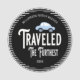 Award this badge of honour to the person who travelled the furthest to reach your family reunion event. Keepsake memento black and white design features a blue automobile or car to represent travelling. Hand out at a awards ceremony.