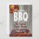 Grey wood background with photos of chicken wings at top left corner and barbecue ribs at bottom on front. Includes customisable text on front and back of card -templates are at right. Reverse side has a grey wood background with photo of pork barbecue ribs at bottom.