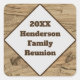 Family Reunion Brown Wood Grain Year and Last Name Square Sticker