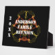 Are you hosting a family reunion dinner or picnic? This plaque will look great on a welcome table or at the head of the buffet line giving your reunion an out of this world feel. This tabletop plaque features a black background and white text along with an artistic, kaleidoscope design in orange and yellow colors. Your family's name and year accompanies this design. All text can easily be personalized to create a welcome sign as unique as your family.