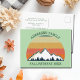 Cool custom family reunion postcard invitation for an autumn get-together with cousins, aunts, uncles, and grandparents. Invite the whole crew with your last name and year in green surrounding the beautiful fall sunset image over the mountains and trees. Great personalised group camping trip design.