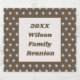 Personalise your next family reunion dinner with this inexpensive beer bottle label. The polka dot pattern features silver circles against a dark brown background. A large rectangle in the centre features brown and beige colours and provides a solid background for your personalised reunion information. Quickly and easily customise the year and your family name. These beer bottle labels also offer a simple and unique way to create keepsakes for your reunion guests.