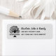 We've added a tree logo frequently used in genealogy and family reunion literature and stationery. Ours is a black silhouette and an open space for your family surname. Great return address label if your one of the reunion organizers or a family genealogist doing research mailings and requests. Add your first name(s) and address and choose a different background colour, if you wish. Start by clicking on "customise further".