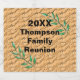 Create a memorable keepsake for your next family reunion with these unique beer bottle labels. The year and your family's name appears in the centre of this beer label. The text is surrounded by tree branches with bright green leaves. The brown background resembles a basket weave or cracked earth pattern. All text can easily be personalised for your large family gathering.