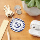 This nautical inspired keychain is the perfect keepsake for family reunion parties. This design features a blue anchor decorated with a rope and encircled by a rope with navy blue and white striped background. At the top in curved typography it has your family name and the word reunion, ie, "Williams Family Reunion". On the sides of the anchor it has "EST." and the year your family was established. Below in curved text is your city and state all of which may be personalised.