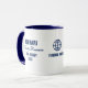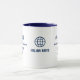 Personalise this family reunion mug with your family name, location, year, and heritage(s). Great as a keepsake for families who wish to make memories together. The modern typography together with an elegant script text and the design elements (a globe and stars) are in navy blue.