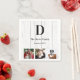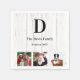 Personalise and add your monogram letter, family name, and family reunion year. Black letters. Add 3 of your own family photos. Rusic white wood as background.