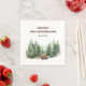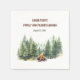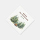 Paper napkins featuring pine wood forest and campfire. Everything is placed on a the white background. Perfect for your next family reunion, birthday or any nature-themed event. Easily personalise all the text. - Kate Eden Art.