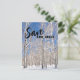 Send out an alert for the upcoming family reunion with this postcard save the date announcement and invitation featuring a snow cover Aspen trees on the front. Personalise all the details on the back, remove text, or edit using the design tool to select a font style, size, and colour you like. You can even replace the photograph with your vertical format photograph.