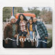 This custom mouse pad that says "family" in a modern script font with hearts in white and your family photo would look fabulous on your desk or counter or make a great gift for loved ones. It's super easy to customise - just upload your photo. It's that simple!