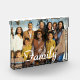 Modern custom photo block with your favourite photo over a trendy swirly script reading FAMILY and your custom name below.