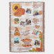 Celebrate gratitude and togetherness with this cosy Family Thanksgiving Memories blanket, perfect for showcasing all the moments that make your holiday special. The background features a warm, autumn-hued chequered picnic blanket, evoking the feel of a festive fall gathering. Scattered across the layout are delightful Thanksgiving icons like pumpkin pie, sunflowers, turkeys, and pumpkins. Space for approximately eight cherished family photos is grouped casually in clusters of 1s, 2s, and 3s, creating a relaxed and scrapbook-style aesthetic. Light-hearted, editable family quotes are nestled among the photos to bring a touch of humour and warmth. Near the bottom, a customisable text area framed by autumn leaves lets you add your family name or a personal message. This makes a perfect heirloom piece or heartfelt holiday gift!