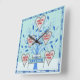 Make your own personalised five-photo collage square clock with this pretty, snowy template design. This wall clock has a beautiful, curvy winter tree image with white snow, a frozen blue sky and leaves in frosty shades of white, blue and grey. It's all lightly textured.