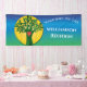 Hang this elegant banner at your next Family Reunion Party event. Elegant scroll work highlights your family name. Family tree icon to represent your own heritage. Blue gradient background accented with a green tree complete with a love heart to show the love that your family has for one another.