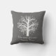 Family Tree, White Tree on Grey, 8 Names & Dates Cushion