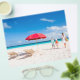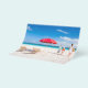 Two chairs under umbrella on a beautiful tropical beach with family walking nearby