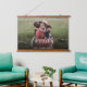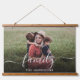 Create a custom hanging wall tapestry to celebrate your family. "family" overlays your photo in a stylish white script with swashes. Add your name in simple white typography.
