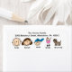 You can customise these cute stick figure family return address labels with names and your address! Features a dad with short dark hair, a mum with brown hair, a boy with a blue baseball cap, a baby girl in a carriage, and a dog.