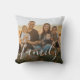 Personalise this minimalist family writing custom photo white elegant script throw pillow.