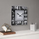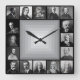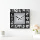 Along the borders of this square clock are placed small portraits of sixteen of the greatest composers the world has known; at twelve, three, six, and nine o'clock, we have Beethoven, Brahms, Bach, and Mozart instead of the usual numbers, and lined up in between are twelve of their illustrious comrades in music. Concentric squares in shades of grey fill the central surface of this timepiece, which awaits its spot in the musician or music lover's home or studio.