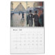 Famous Impressionist Paintings ; January The Bar at the Folies-Bergere Edouard Manet February A Rainy Day in Paris Gustave Caillebotte March Rock Arch West of Etretat Claude Monet April Signora at Gardino Claude Monet May Japanese Bridge and Water Lilies Claude Monet June A Sunday Afternoon on the Island of the Grande Jatte Georges Seurat July Susan Comforting the Baby Mary Cassatt August The Rower's Lunch Pierre Auguste Renoir September Bathers at Asnieres Georges Seurat October Starry Night Vincent van Gogh November Montmontre Boulevard by Night Camille Pissaro December The Rehearsal on Stage Edgar Degas 2019