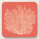 Fan Coral Print, Peach on Deep Coral Orange Coaster