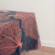 Vector pattern made of fan corals in living coral colour on dark blue background.