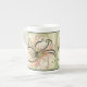 In soft shades of pink, brown, mossy green and black, this original, highly stylised flower design by Leslie Sigal Javorek, on this fine bone china mug, evokes feelings of graceful movement, energy, and magic.