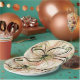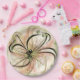 In soft shades of pink, brown, mossy green and black, this original, highly stylised flower design by Leslie Sigal Javorek evokes feelings of graceful movement, energy, and magic. These paper plates are perfect for dinners or parties.