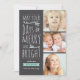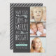 A sweet wish for a Merry and Bright Christmas is sent with this modern design featuring a lovely hand lettering and highlighted by a illustrated scrolls in blush and aqua set against a grey background with space for three photos of your family. A charming and playful contemporary greeting to send to family and friends this holiday season.