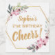 Elevate your milestone birthday celebration with our Elegant 21st Birthday Wine Labels, adorned with graceful Japanese-style pink sakura flowers and a regal golden-lined frame, beautifully united to create an exquisite wreath. These chic drink bottle labels exude sophistication, capturing the essence of your special day. The customisable template includes a personalised name, the occasion, and a grand custom text that exclaims "cheers" in luxurious golden yellow print against a pristine white base. Whether you're a guest looking to create a special and unique birthday gift or a celebration coordinator seeking to add a lavish touch to the party, these labels offer the perfect solution for an unforgettable celebration.