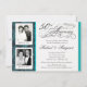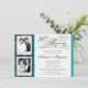 Elegant Anniversary Party Invitations -- Change the number for any year being celebrated. Teal peacock blue damask trim -- 2 photo inserts for "then & now" with fancy vintage script lettering and retro accents. Easily customised and uniquely personalised by you! Just upload your photos and add the names, date, and details for your special Anniversary celebration. Perfect for framing as a gift. **NOTE: Sized for LARGE 6.5 x 8.75 invitation cards. Click "Customise It" to change the size and font type. Other sizes and styles available in gallery. © Teri Francis. Matching postage and thank you cards available upon request.