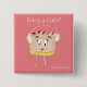 Funny adorable strawberry cheesecake with earmuffs cartoon art on a pink background with the quote 'Fancy a cake?'. It's sure to grab the attention of any foodie especially dessert lover. Quirky cute pink watercolor illustration and slogan by artist Catherine Sweetman