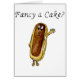 'Fancy a cake?' Say it with cake. Let this funny chocolate eclair novelty art greetings card say it for you. You will have the full attention of foodies, chocoholics and cake lovers everywhere. You can change the background colour and add your own text to personalise this humourous quirky card. Funny illustration by artist Catherine Sweetman