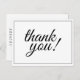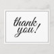 This fancy, luxurious thank-you postcard design features the message "thank you!" on the front, along with a customised message on the back. It could be used to offer thanks to somebody who has done something nice.