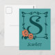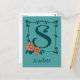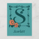 Beautiful art nouveau letter S. The letter and the fancy retro border are in deep cyan, the flowers are in brilliant vermillion.