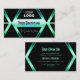 Make a lasting impression with this eye catching and elegant business card design featuring modern black geometric graphics with bright teal shimmer background.