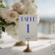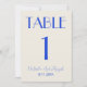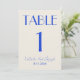 Classy and elegant whimsical ivory and blue wedding table numbers. As you see it features a ivory background with blue script that match the whole suite.