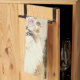 Fun kitchen towel for cat lovers features vintage sepia tint background photo of the Eiffel Tower with overlay of beautiful fancy cat with floral crown.