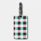 Turquoise luggage tag with a fancy white cat wearing a monocle and a polka dot bow-tie. Personalise with name and initial in black and white.