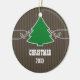 Sweet and whimsical Fancy Christmas Tree Swirls Ornament featuring a swirl border and dots highlighting a fun holiday tree on a faux wood panel background. This charming Christmas ornament is easy to customise with the text of your choosing and is perfect for adding a hint of holiday cheer to any decor or would make a lovely personalised keepsake gift! Click on the "Customise It" button to find additional personalisation options.