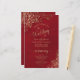 These wedding programs are elegant and tasteful, while still being budget friendly. The design features ornate golden faux foil filigree with gold text on a marbled crimson red background. The typography features lacy script calligraphy, and there is room for details on the ceremony, the bridal party, and a short thank you.