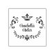 Customisable rubber stamp features ornate crown and leaves silhouette with modern script text.
