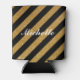 Custom shiny faux gold glitter diagonal striped wedding bottle and can coolers. Personalised modern bold stripe cancoolers with name or monogram. Fancy sparkly glimmers beverage holders with names. Classy glittery design with name or monogram letters. Make one for with for team groom, team bride, bridesmaid, maid of honour, groomsmen, best man, ring bearer, guests etc. Create your own cosy wedding favour / souvenir for guests at your party. Stripes pattern beverage holder design. Perfect for alcoholic drinks like beer. Elegant script typography. Custom background colour. Sparkling luxury style cosy cooler for chic wedding bbq, fancy bridal party, funny bachelor party, festive engagement, anniversary etc.
