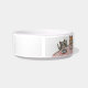 This pet dish is precious! It is larger than expected and the illustrations are exactly as pictured. I had Zazzle add the cat's name to the bowl. Picture tones and colors are right on target. Even the subtle shading of the plaid table cloth is there. Cat's name is to the right of the picture. I was able to choose which font and the print quality came out black bold.