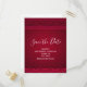 Save the date birthday with a red background decorated with elegant swirls and ornamental designs along the borders.