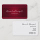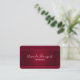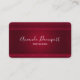 Business cards with a red background decorated with elegant swirls and ornamental designs along the borders. Fancy handwritten style font.