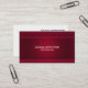 Business cards with a red background decorated with elegant swirls and ornamental designs along the borders. Classic simple font.